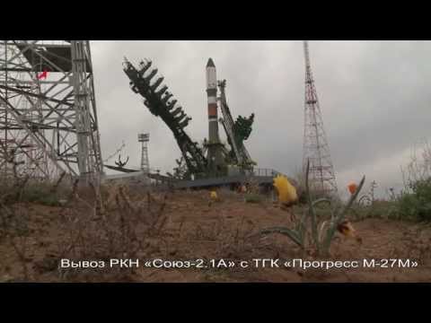- A soyuz rocket carrying the progress m 27m spacecraft is moved to the launch pad