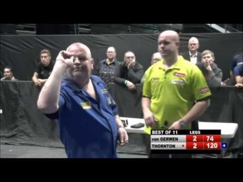 Thornton qualified for the Premier League for the first time thanks to his UK Open win last year. He produced some very impressive performances in the first half of the campaign such as in week four when he scored his highest ever televised average of 109.33 during a 7–2 win over Anderson. He also averaged 107.65 in beating Simon Whitlock 7–1 in week eight, and after the ninth week he was in the top four who would qualify for the play-offs at the end of the season. Thornton suffered somewhat of a dip in form after this as he could only win two of his next five games and went into the last week needing to beat the Dutch duo of Raymond van Barneveld and Michael van Gerwen to progress to the play-offs. He lost to van Barneveld 7–4 and, after other results had gone against him, needed an unlikely 7–0 victory over van Gerwen, but instead was beaten 7–1 to end the season in fifth place.