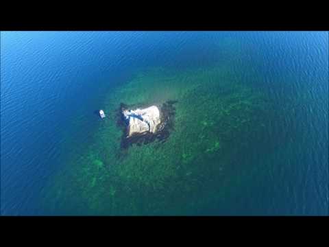 According to Abenaki legend, Oodzee-hozo ("he who created himself") lived before the invention of legs. As he dragged his body around, he created mountains, valleys and rivers, as well as Lake Champlain, which is holy to the Abenaki. Oodzee-hozo turned himself into this rock in the lake, and there his spirit lives.