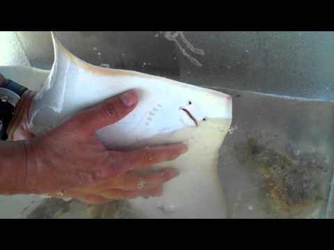 The foraging strategy that these rays use is dependent on the abundance of prey in their environments. They either use opportunistic feeding where they eat what is available, or they use specialized feeding where they eat a specific organism. They tend to feed on larger prey items and swallow them whole; then they enter a long digestion time period where they feed very little or not at all. They prey mainly on Teleosts and crustaceans, but have also been noted to consume bivalve mussels and polychaetes. They use a structure called the lateral line canal; it is located on the dorsal side from the head to the pectoral fins, and are arranged in a branching pattern. The lateral line contains neuromasts that assists the rays in detecting changes in water movement. The upper jaw consists of 6 to 120 teeth and the lower jaw has 52 to 106 teeth; each jaw contains 6 to 8 simultaneously functioning rows.