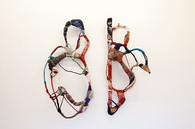 Gomes uses fabric, threads, and objects that are either gifts or found to create multi-dimensional sculptures and structures.Much of her work has been described as auto-biographical.