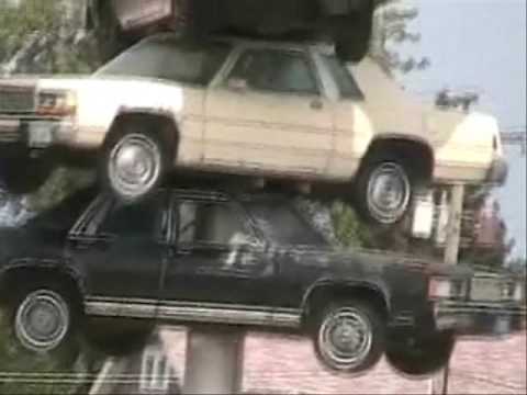 It was originally commissioned by the shopping center developer and owner, David Bermant, a collector of modern art who also donated his BMW car to be placed second from the top of the sculpture. Shuler himself owned the red 1967 VW Beetle that crowned the sculpture. The foundation of the sculpture reached nearly 30 feet into the ground; the cost of erecting it was over $75,000. The sculpture has been featured in the film Wayne's World, on the cover of a book, on postcards, state tourist brochures, and maps. On August 28, 2007, it was featured in the syndicated comic strip Zippy the Pinhead.
