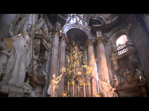 The church excels not only in the architecture, but also in the decoration, mainly with the frescos by Jan Lukas Kracker and a fresco inside the 70 m high dome by František Xaver Palko. The interior is further decorated with sculptures by František Ignác Platzer. The Baroque organ has over 4,000 pipes up to six metres in length and was played by Mozart in 1787. Mozart's spectacular masterpiece, Mass in C, was first performed in the Church of Saint Nicholas shortly after his visit.