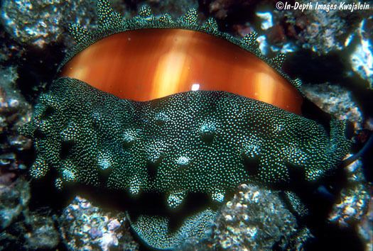 These cowries live on coral reef or in shallow lagoons in tropical intertidal and subtidal waters up to 30 m depth. They can be found under ledges and in small coral caves at night, as they start feeding at dusk.