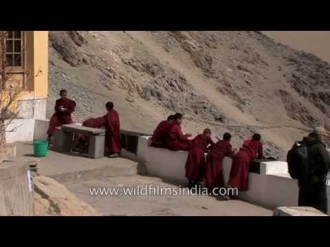 - Little monks eat their lunch at thiksey monastery in ladakh