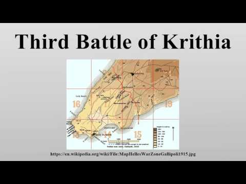 The Third Battle of Krithia (Turkish: Kirte), fought on the Gallipoli peninsula during World War I, was the final in a series of Allied attacks against the Ottoman defences aimed at capturing the original objectives of 25 April 1915. The previous failures in the first and second battles resulted in a less ambitious plan being developed for the attack, but the outcome was another costly failure for the Allies. The allied aim was, as always to facilitate the capture of Alçı Tepe (Achi Baba) which commanded most of the peninsula.