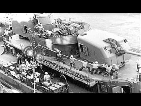 Uss bunker hill cv 17 refueling uss bullard dd 660 hd stock footage