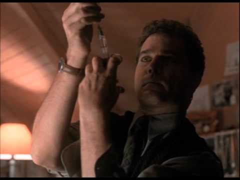 Later that evening Dr. Krane retrieves the sample of CFS from his wife's autopsy, and then breaks into Dr. Briggs office. He then goes back to his house which is filled with crime scene photos, and other pieces of evidence from his wife's murder, including the taped outline of where her body was found. Dr. Krane injects himself with the serum, and has a memory flash of the night of his wife's murder, but is unable to see the killers face. Dr Krane then returns to the lab, retrieves the CSF from the female victim at the drug store. Dr Krane drives to the drug store crime scene where he then injects himself, again, with the serum. During this memory flashback Dr. Krane is finally able to see the killers face. He then returns to the police station where he meets with a police sketch artist and tries to create a police sketch of the killer. The sketch artist does a poor job, and forces Dr. Krane to draw the picture himself. Using the sketch Dr Krane and his friend and colleague, Curtis Avery (David Paymer), enter the sketch into a computer program that generates a searchable photo of the killer. During this process Dr. Krane has a shocking reaction to the photo that causes a nose bleed.