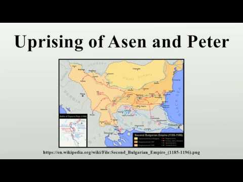 The Uprising of Asen and Peter (Bulgarian: Въстание на Асен и Петър) was a revolt of Bulgarians and Vlachs living in the theme of Paristrion of the Byzantine Empire, caused by a tax increase. It began on 26 October 1185, the feast day of St. Demetrius of Thessaloniki, and ended with the creation of the Second Bulgarian Empire, ruled by the Asen dynasty.