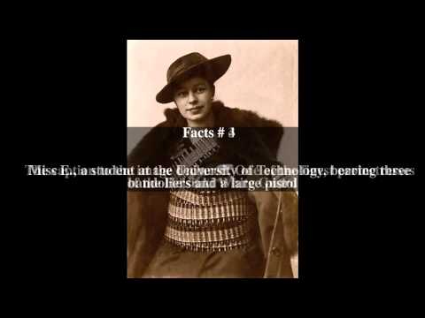 Verna Erikson (1893–1918) is a Finnish woman whose picture, taken when she was a weapon smuggler (shown on the right) was an icon of White Finland. This picture was taken in the spring of 1918, in the middle of the Finnish Civil War, when Erikson was a student at the Helsinki University of Technology. It was published on the cover of the weekly magazine Suomen Kuvalehti on June 15, 1918. The caption to the image declared, "One of the finest protectresses of the Helsinki White Guard. Miss E., a student at the University of Technology, bearing three bandoliers and a large pistol. Altogether Miss E. is carrying some 1,350 bullets strapped to her person."