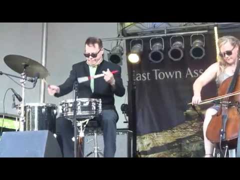 DeLorenzo's signature sound is a result of his minimalist drum kit. He often uses nothing more than a snare drum, a tranceaphone and steel brushes. The tranceaphone consists of a metal bushel basket inverted over a tom. He favors this style of kit because in their early days, the band often played on the streets.