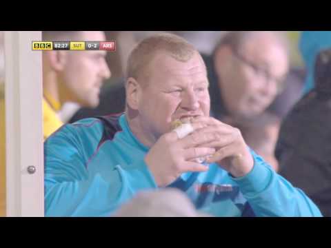 Wayne shaw sutton united taunts arsenal with a pie