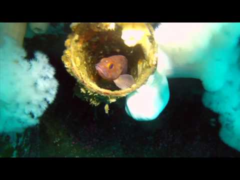These different sunken structures make artificial reefs well positioned in the cold nutrient rich currents. Filter feeders compete for room to anchor themselves. Most prevalent are Corynactis californica anemones.The other most common specie is the large, snow white Metridium anemone. There are numerous other species on the wrecks, including other anemones, scallops, barnacles, tunicates, zoanthids, crabs, starfish, brittle stars, nudibranchs, fish and other species.