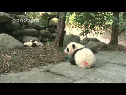 Panda cub practices walking
